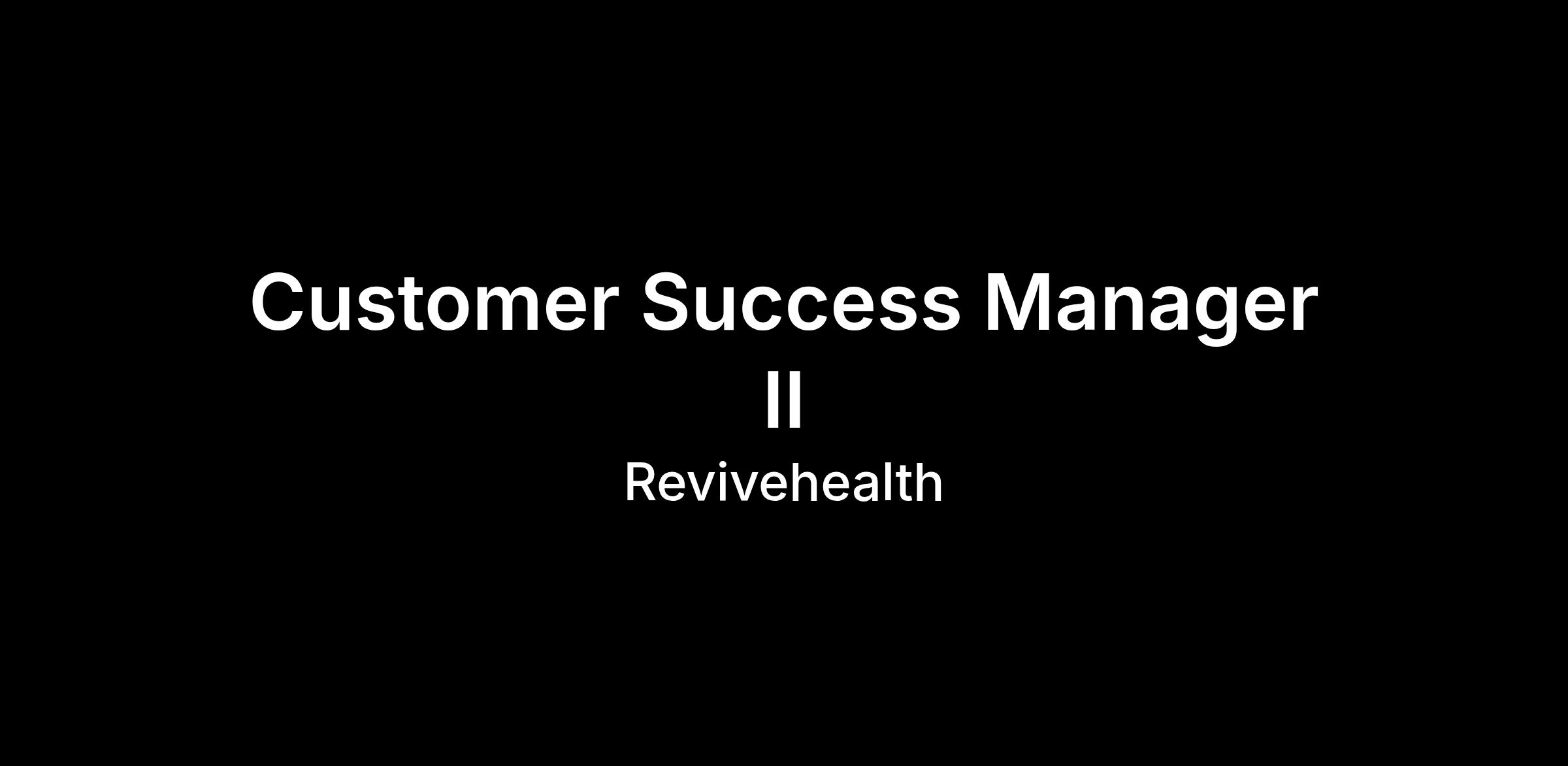 The Customer Success Manager II is responsible for managing a portfolio of customer programs to ensure successful execution of program and service deliverables. Provide incremental revenue and increase profitability for a portfolio of Revive contracts. Implement, promote and manage programs. Develop relationships with key contacts, provide consultation and program troubleshooting. Assist client companies by identifying their unique health risks and assist in the development of system-wide action plans. Recommend and implement new workplace services. Ensure client satisfaction and retention of contracts. Provide ongoing support to client companies to make positive lifestyle changes in their workforce. Provide onsite services as needed. Provide direction and oversight for accounts assigned.