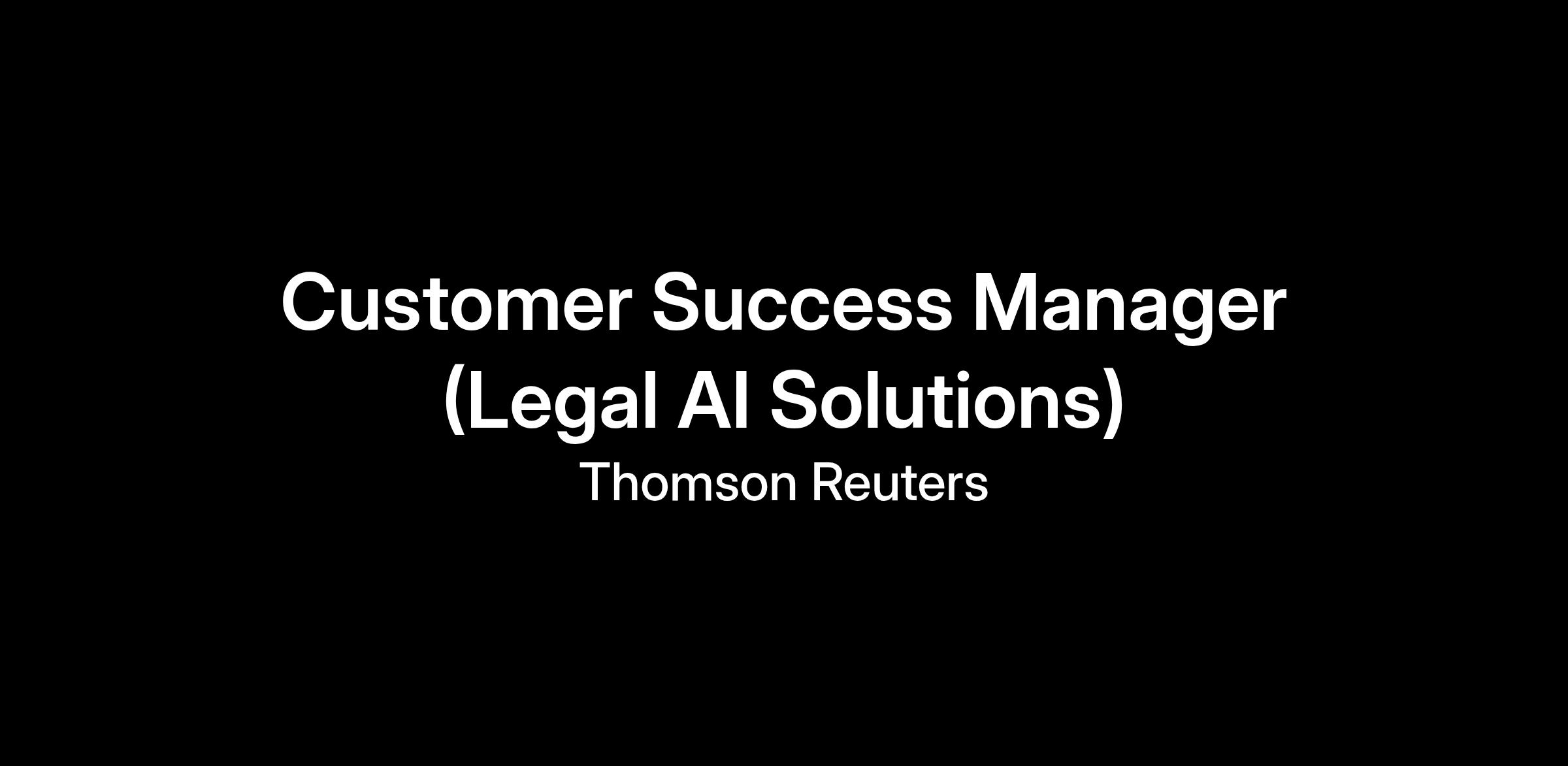Thomson Reuters is transforming the legal industry with unmatched legal content, expertise, and innovative AI technology. Thomson Reuters acquired a leading AI startup, Casetext in 2023 and scaled up to become one of the leading AI solution providers to law firms and corporations. As part of our transformation, we are building a world-class Customer Success organization to ensure our customers achieve their goals and unlock the full value of our solutions.