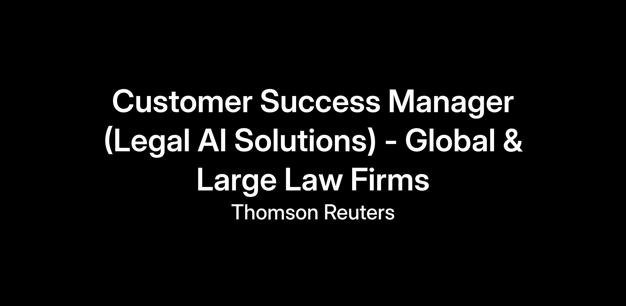 Thomson Reuters is transforming the legal industry with unmatched legal content, expertise, and innovative AI technology. Thomson Reuters acquired a leading AI startup, Casetext in 2023 and scaled up to become one of the leading AI solution providers to law firms and corporations. As part of our transformation, we are building a world-class Customer Success organization to ensure our customers achieve their goals and unlock the full value of our solutions.
