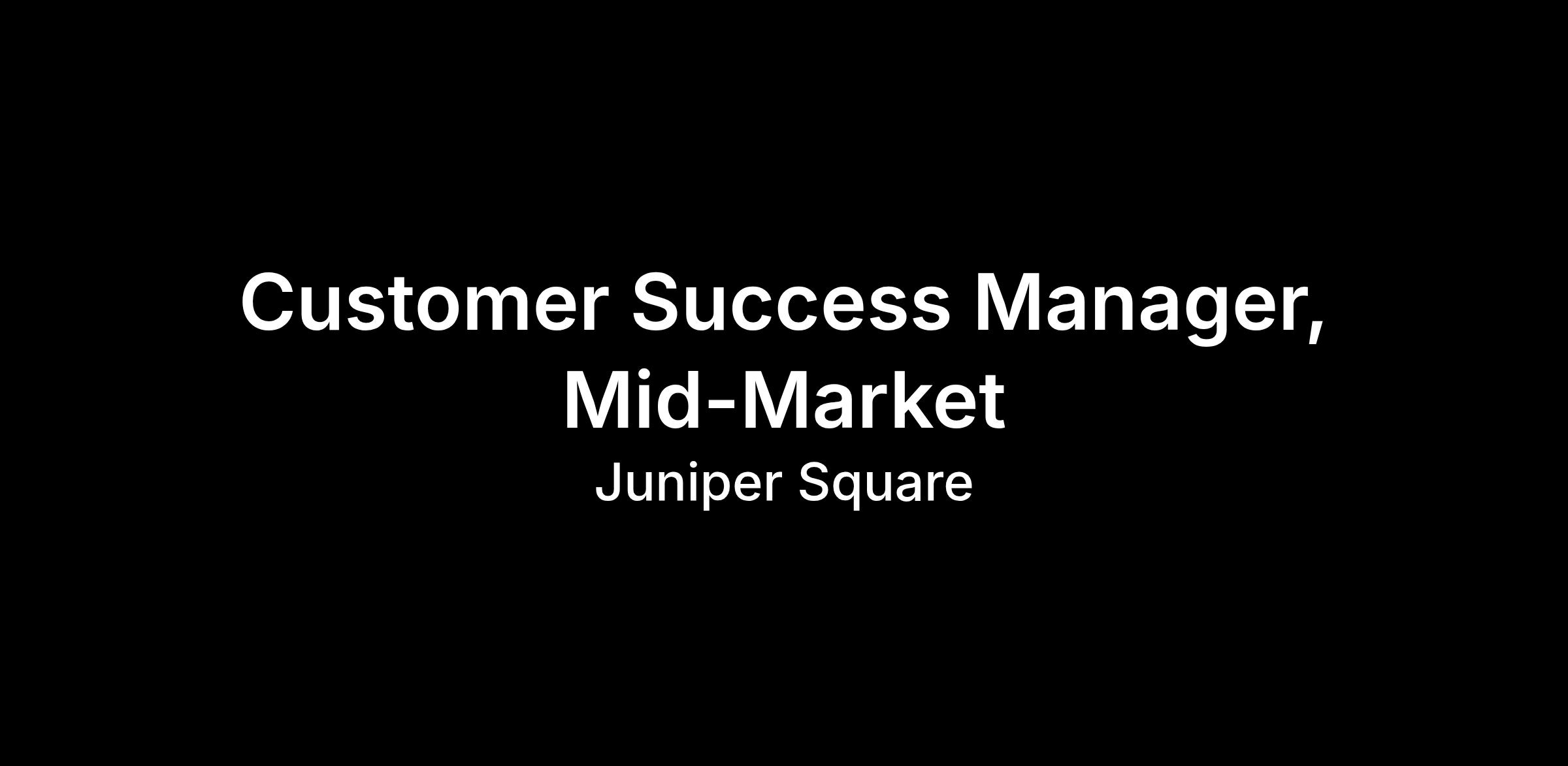 Juniper Square’s Customer Success organization is responsible for onboarding customers, driving usage and adoption of the product, and ensuring customer satisfaction. In this role, you’d report to a Manager, Mid Market Customer Success who brings 10+ years of client relationship experience and a passion for building growing teams.