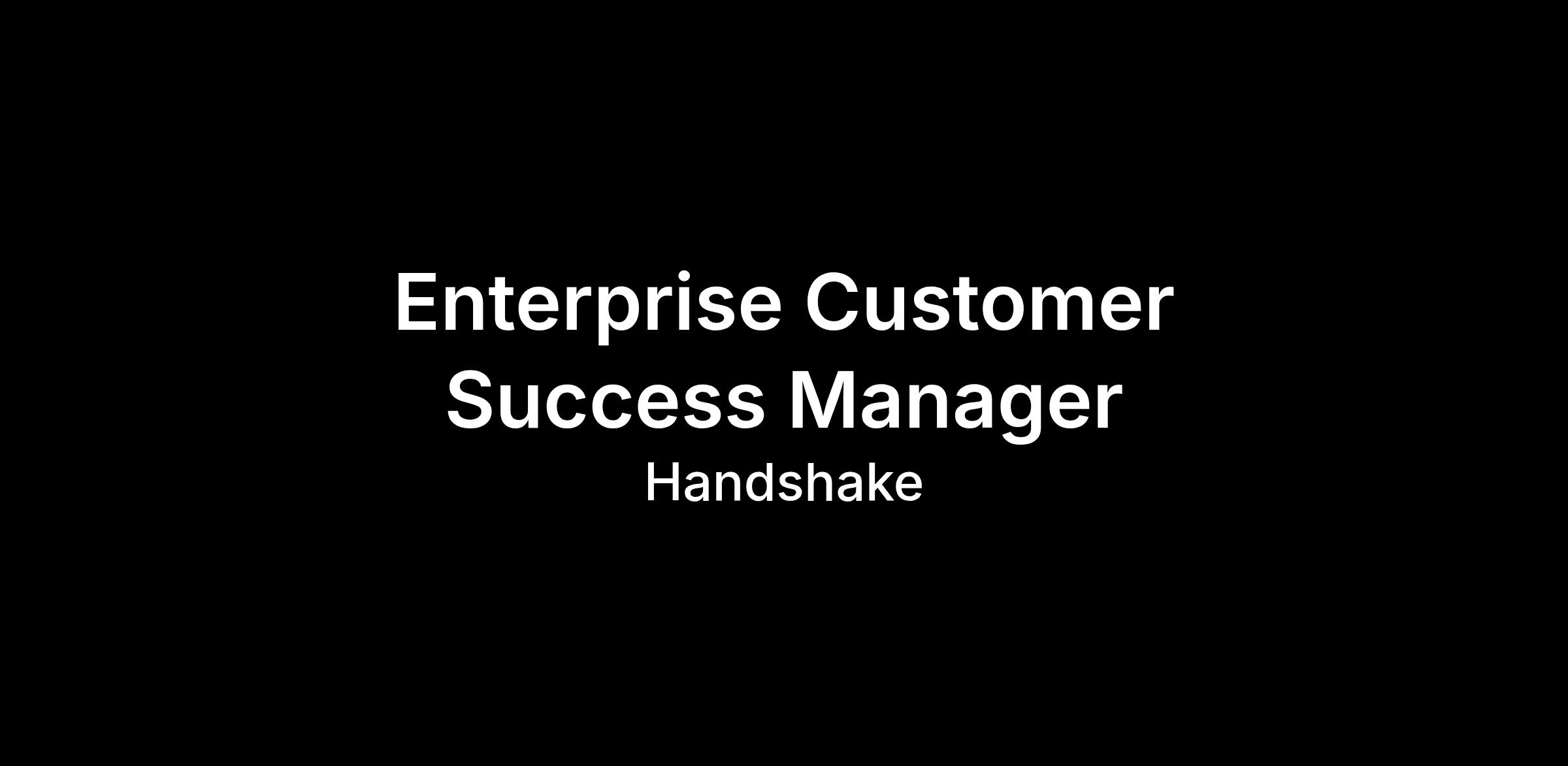Reporting to the Senior Manager of Enterprise Customer Success, you'll partner with our Enterprise employer partners to ensure they achieve their hiring goals, drive adoption across recruiting teams and ensure they are seeing value in the Handshake product.