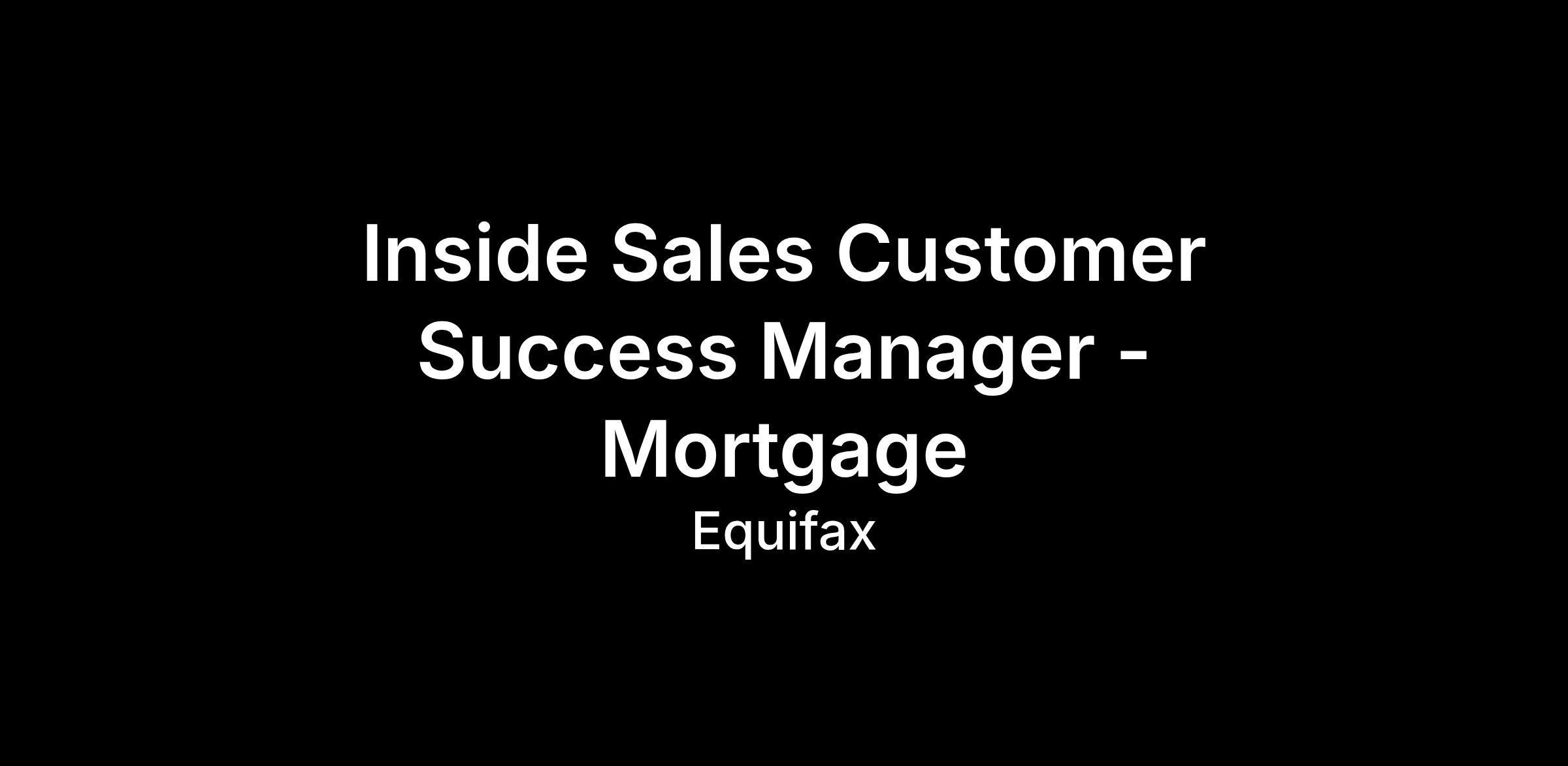 Equifax is looking for a Customer Success Manager to join the Mortgage Inside Sales team. This role is a relationship-based sales position responsible for optimizing the customer experience lifecycle by partnering with clients to identify and meet business objectives. This involves handling post-sales implementation, program management and collaborating with the customer to ensure they are realizing expected value from Equifax solutions, while ultimately driving adoption and retention.