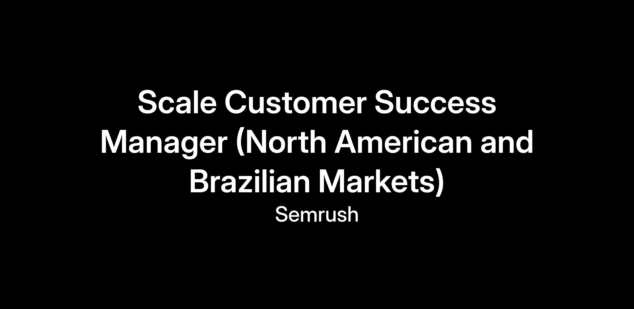 Are you ready to be a part of it? This is your chance! We’re hiring for Scale Customer Success Manager (North American and Brazilian Markets).Our Scale Customer Success Team is responsible for full lifecycle events of our Semrush SMB clients; they develop creative solutions to extend reach in 1 to many formats, promote customer adoption and account activation, and support customer growth and retention.
