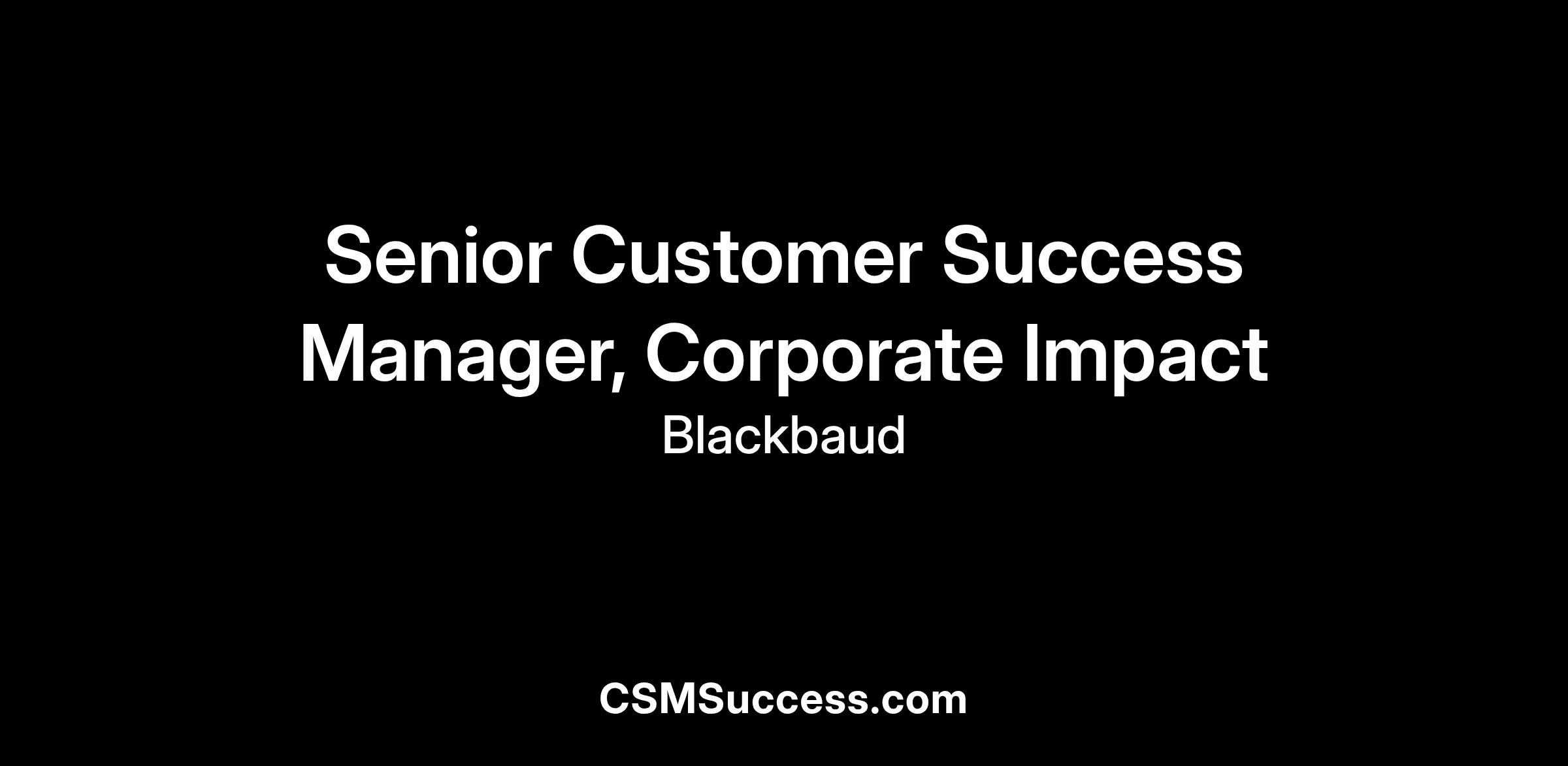 At Blackbaud, we are committed to powering an Ecosystem of Good®—a connected network of people and organizations working together to build a better world. As a Senior Customer Success Manager (CSM), you will play a pivotal role in this mission by serving as a strategic partner to our customers across the social good sector. You will guide them in leveraging Blackbaud’s cloud solutions, services, and data intelligence to achieve meaningful, measurable outcomes aligned with their organizational goals.