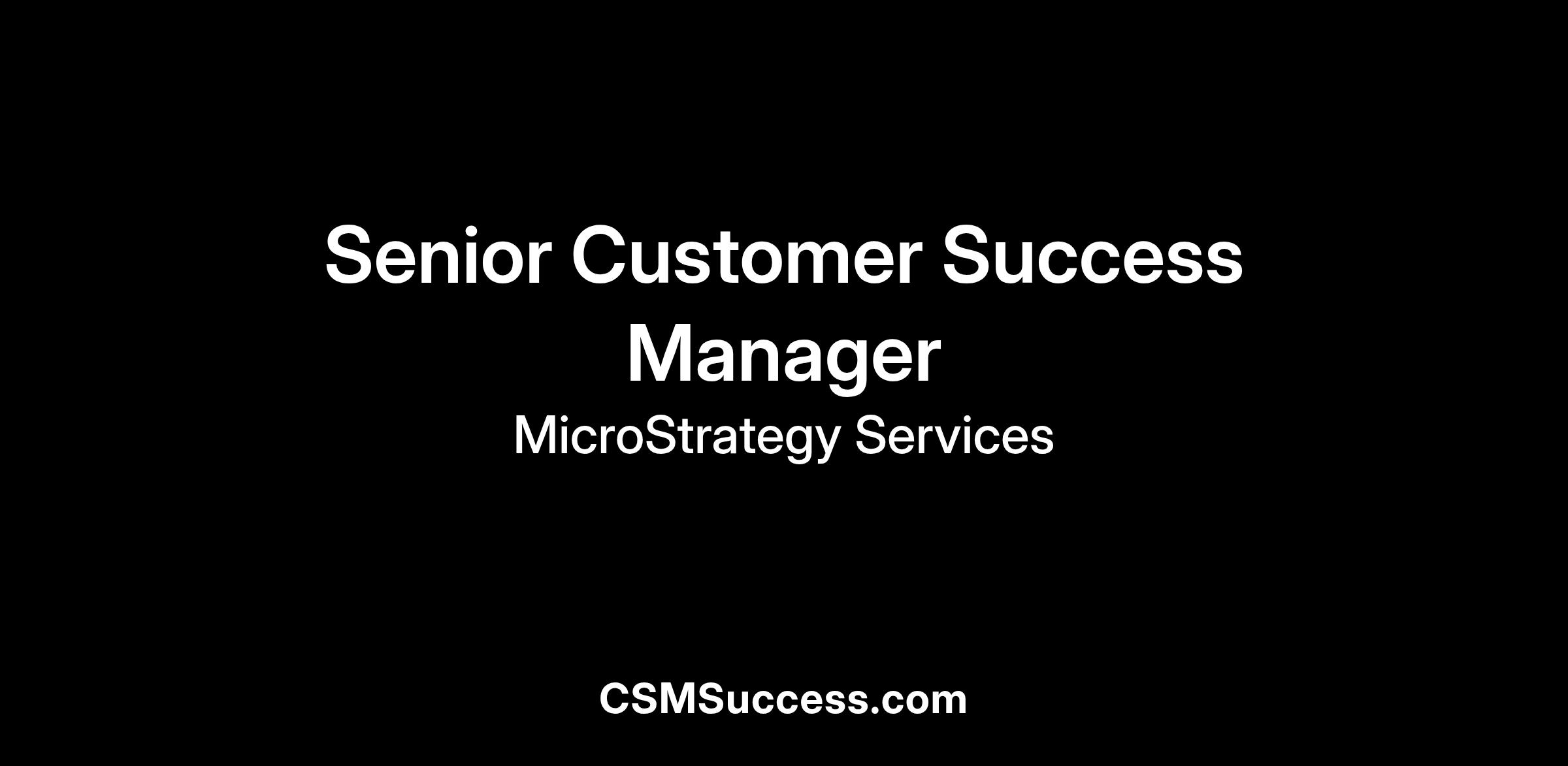 The Role: As a Strategy Senior Customer Success Manager, you will own the complete end-to-end lifecycle of a portfolio of enterprise accounts—including onboarding, adoption, renewals, expansion, and advocacy. You will be fully accountable for ensuring customers achieve measurable business outcomes and long-term success on the Strategy platform.