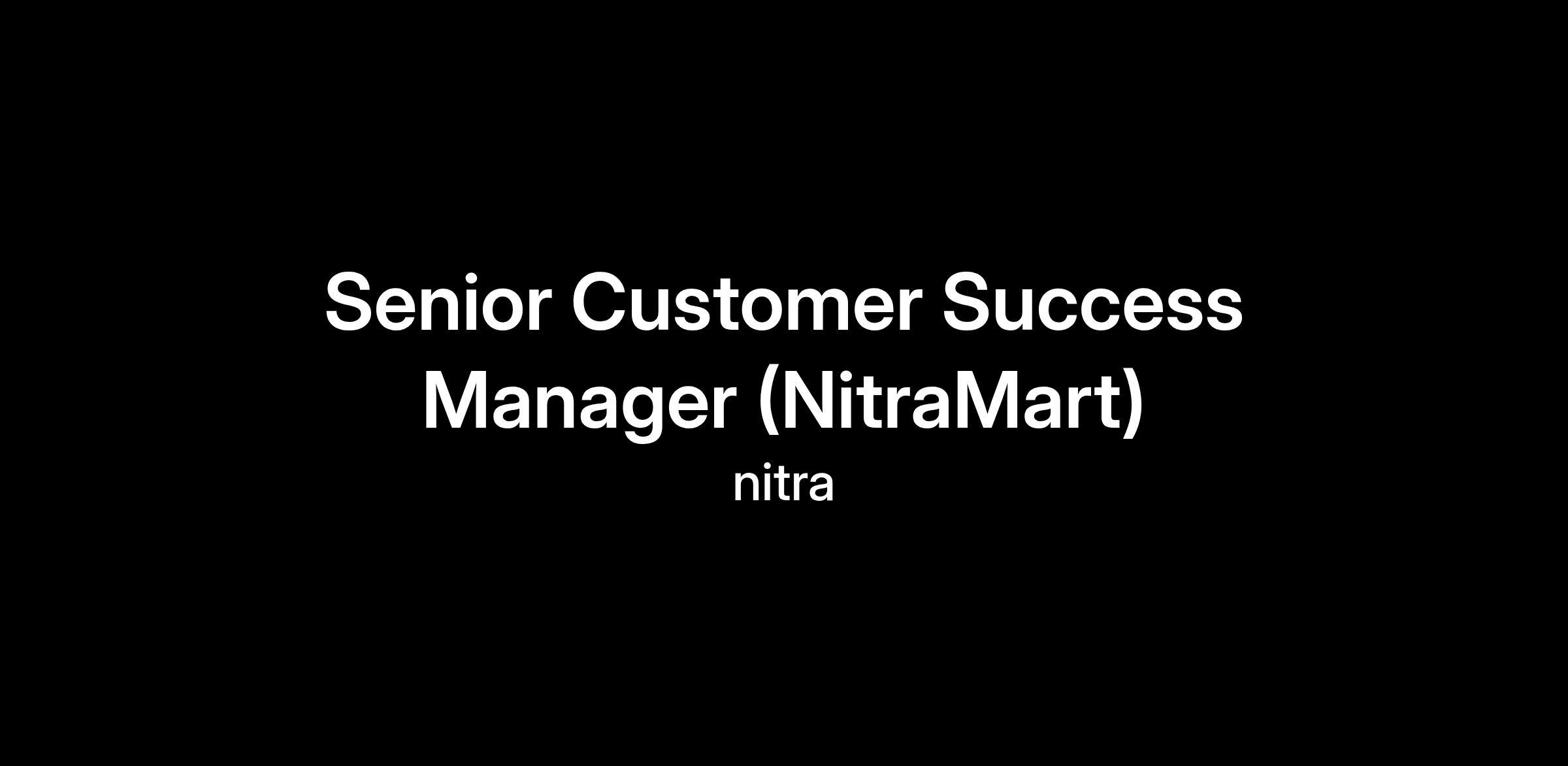 We're looking for: We are looking for a Customer Success Manager for NitraMart to own and manage relationships with our vendors and suppliers, ensuring seamless order fulfillment and a high-quality experience for our customers. This role sits at the center of our marketplace operations and plays a critical role in ensuring reliability, trust, and operational excellence across the supply chain.