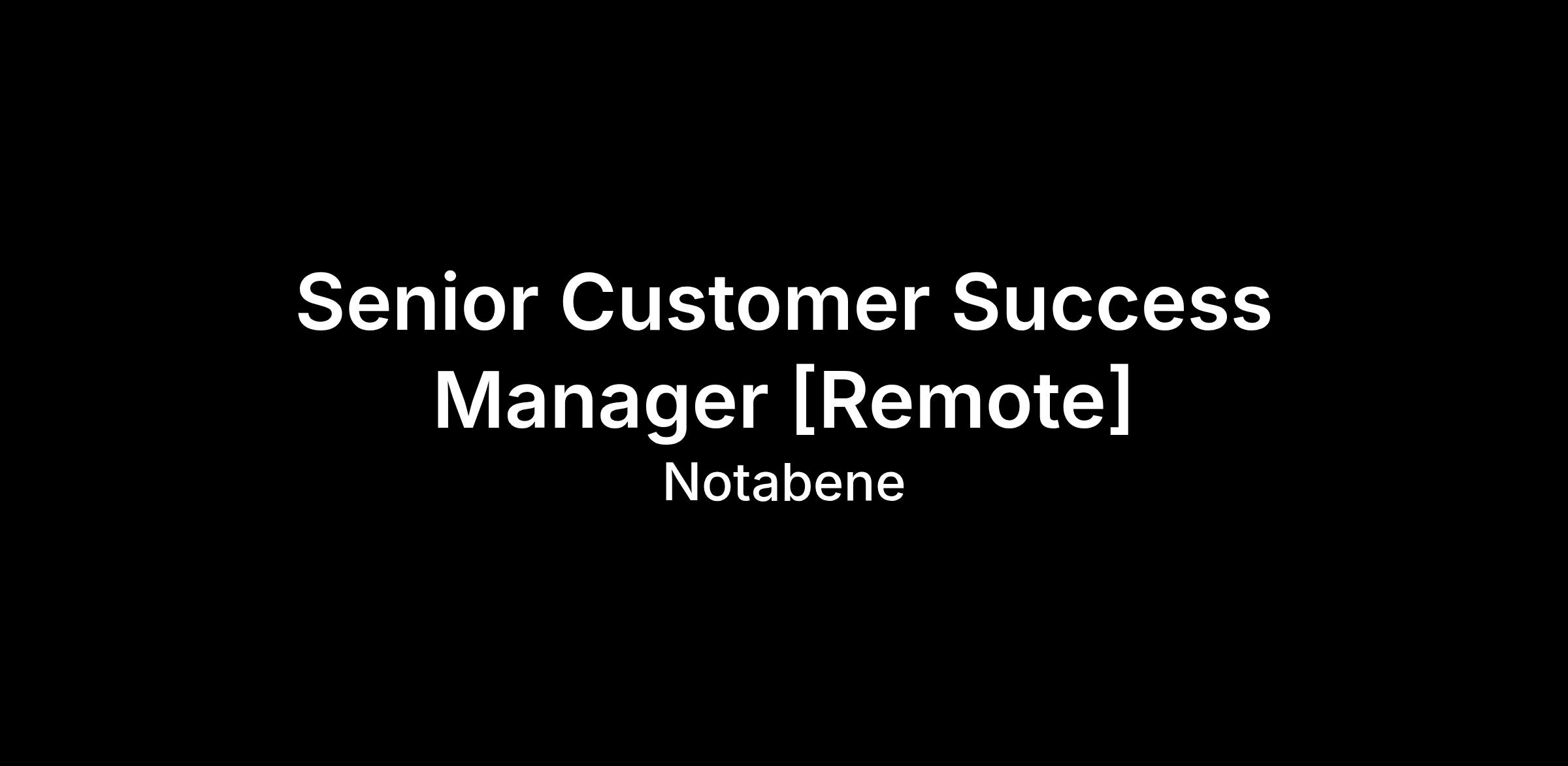 At Notabene, the success of our customers drives everything that we do and our Customer Success team is at the heart of that. As a member of the Customer Success team , you will have a key role in helping to shape the Customer Success strategy while also owning and driving the growth of accounts in your book of business. You will become a trusted advisor to our customers and use data-led insights to help your customer base get the most out of Notabene’s products and services. As a core component of your role, you will also own the post sales commercial journey, being responsible for renewal and upsell of customers within your Book of Business.