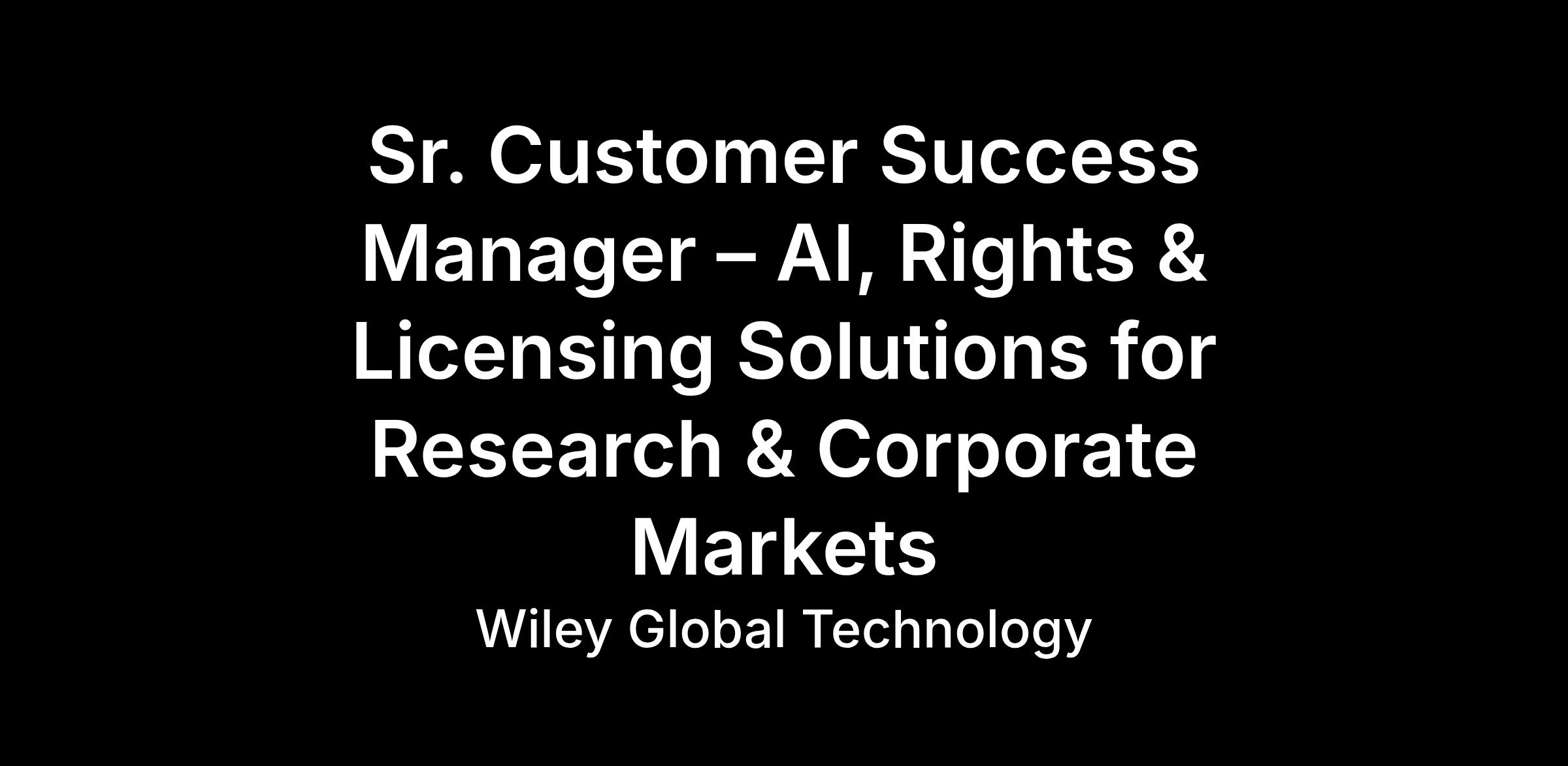 Sr. Customer Success Manager – AI, Rights & Licensing Solutions for Research & Corporate MarketsLocation: